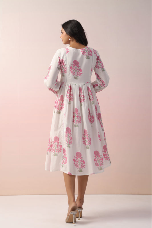 Pink Floral Printed Long Anarkali Dress With Dupatta