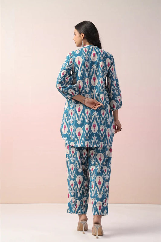 Blue Abstract Printed Cotton Co-Ord Set