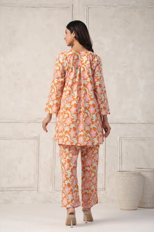 Orange Floral Printed Co-Ord Set