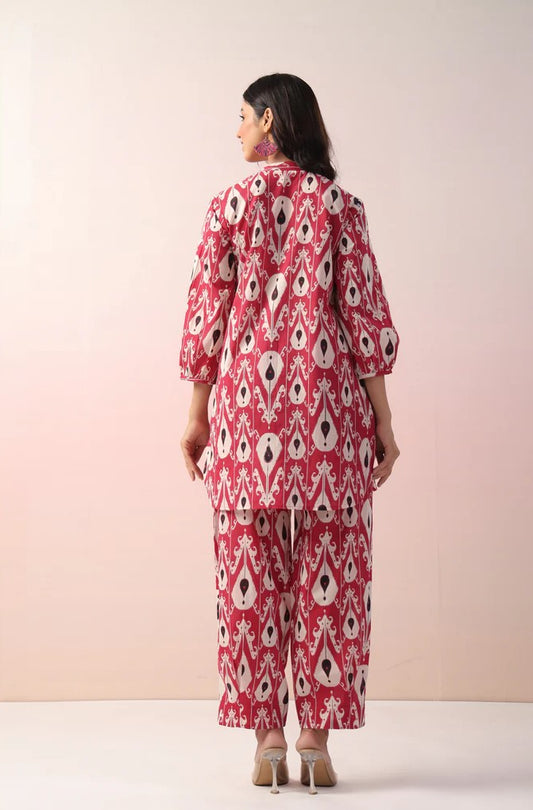 Maroon Abstract Printed Cotton Co-Ord Set
