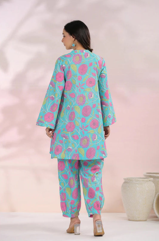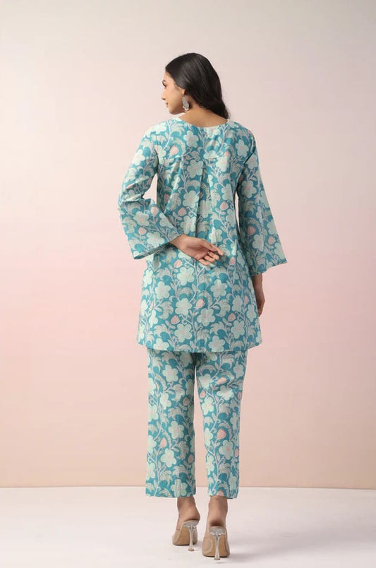 Turquoise Floral Printed Co-Ord Set