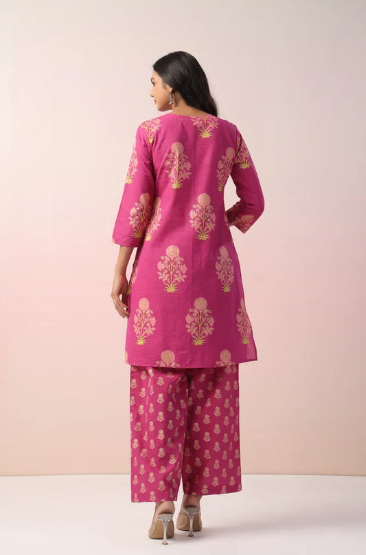 Pink Rose Floral Printed Coord Set