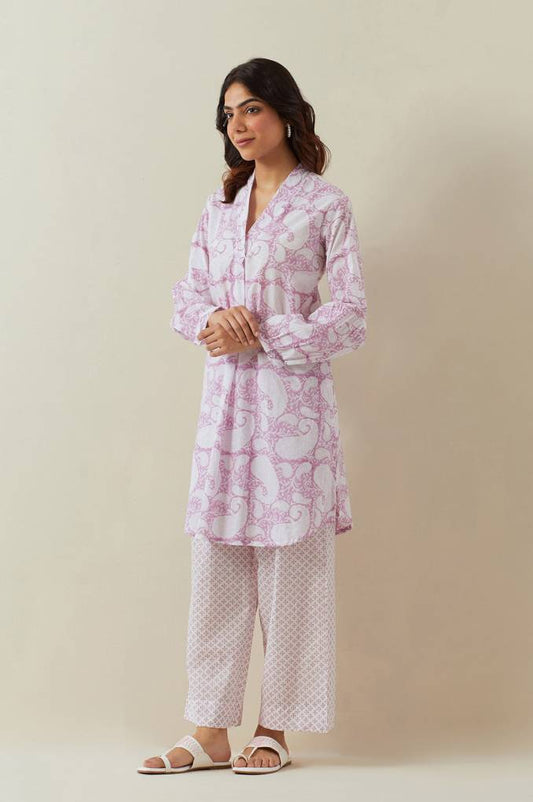 White-Pink Floral Printed Co-ord Set
